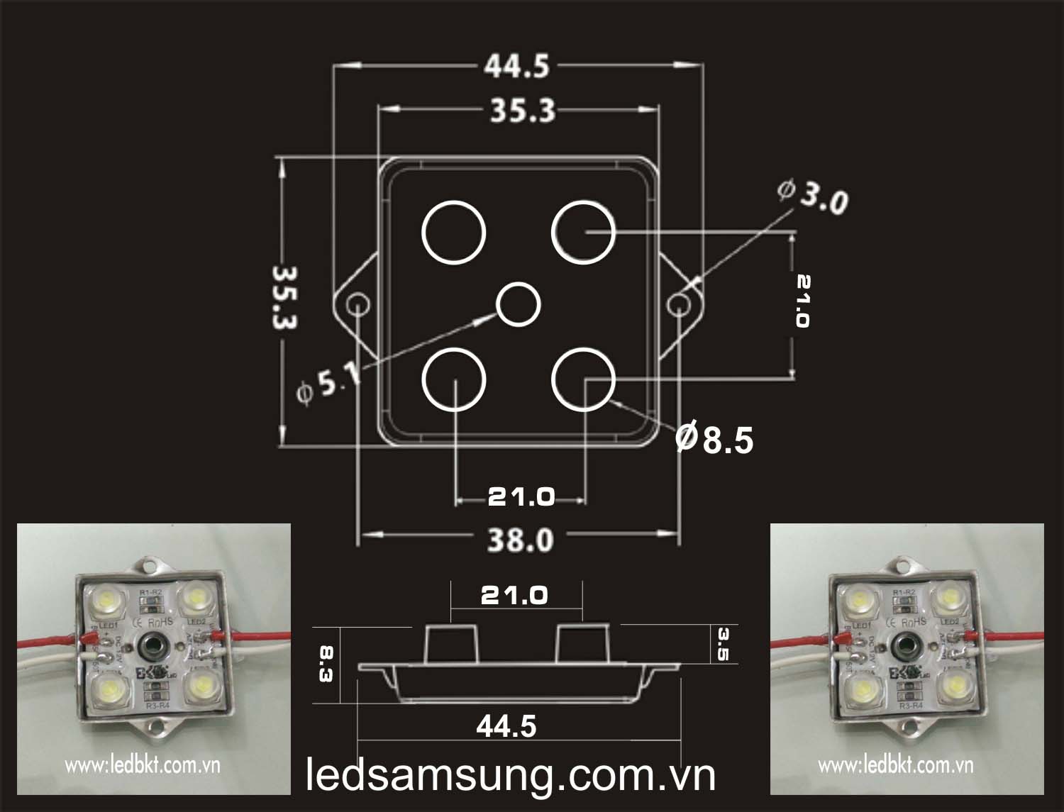 THÔNG SỐ KỸ THUẬT CỦA MODULE 4 LED 5054 SIÊU SÁNG VỚI LENS CAO 3.5MM