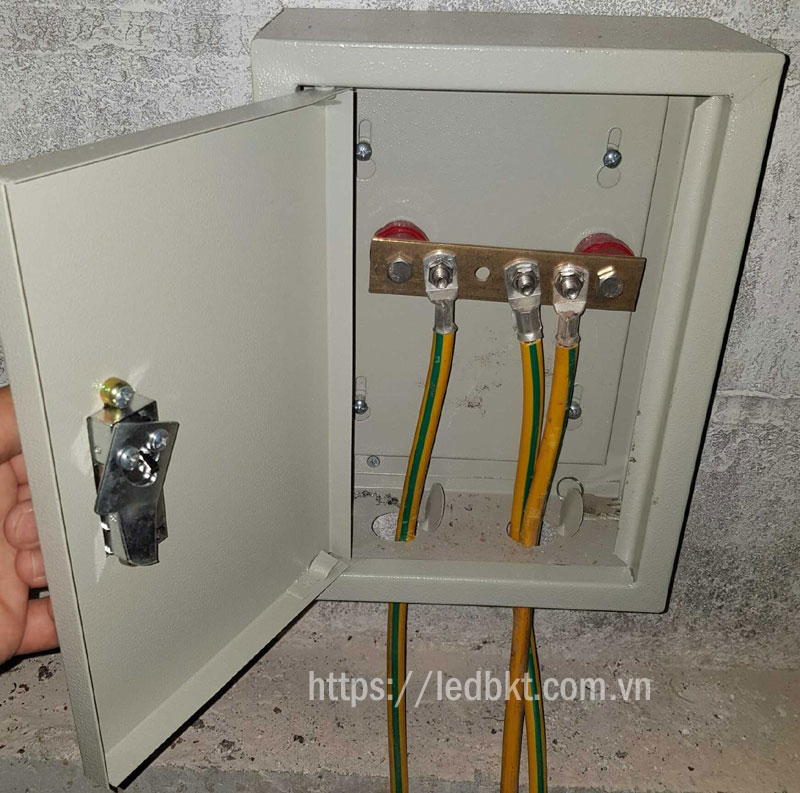 - Lắp đặt : Thường được gắn vào tường gần bãi tiếp địa cách mặt đất 1-1,5m với tủ thép sơn tĩnh điện hoặc chôn xuống đất với tủ nhựa cách điện PVC